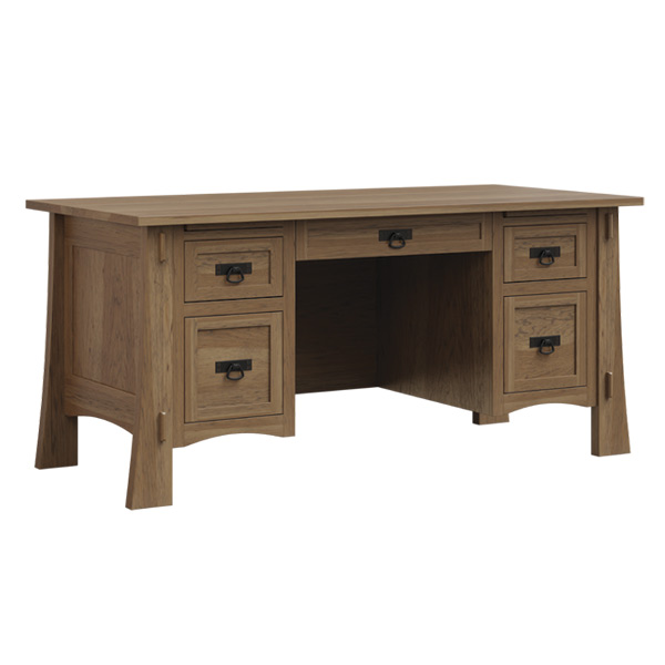 Modesto Desk MFD32 is shown in Rustic Hickory with Sandstone stain.