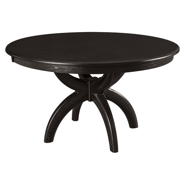 Niles Dining Table has a 1″ thick top, 1/2″ roundover edge is standard, and it has levelers. Shown in Oak with Ebony stain. Please call to order 54″ round.