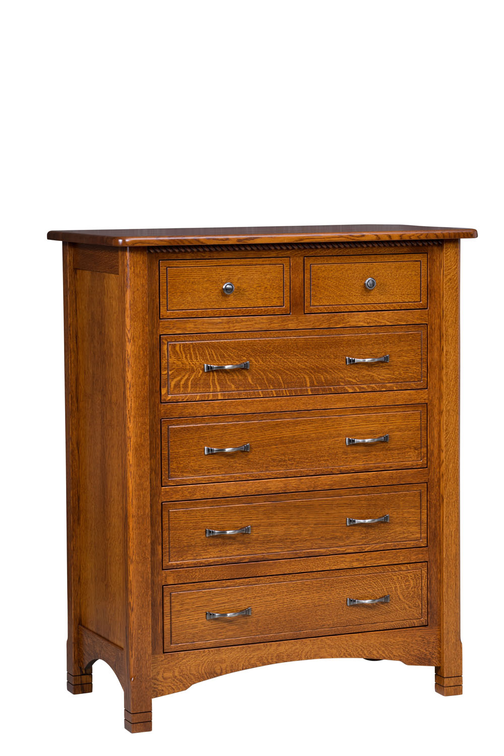 This chest features six pull out drawers that can be upgraded to soft close.  Excellent addition to any nursery. Provides storage space for clothes and blankets.  Standard Hardware is shown.